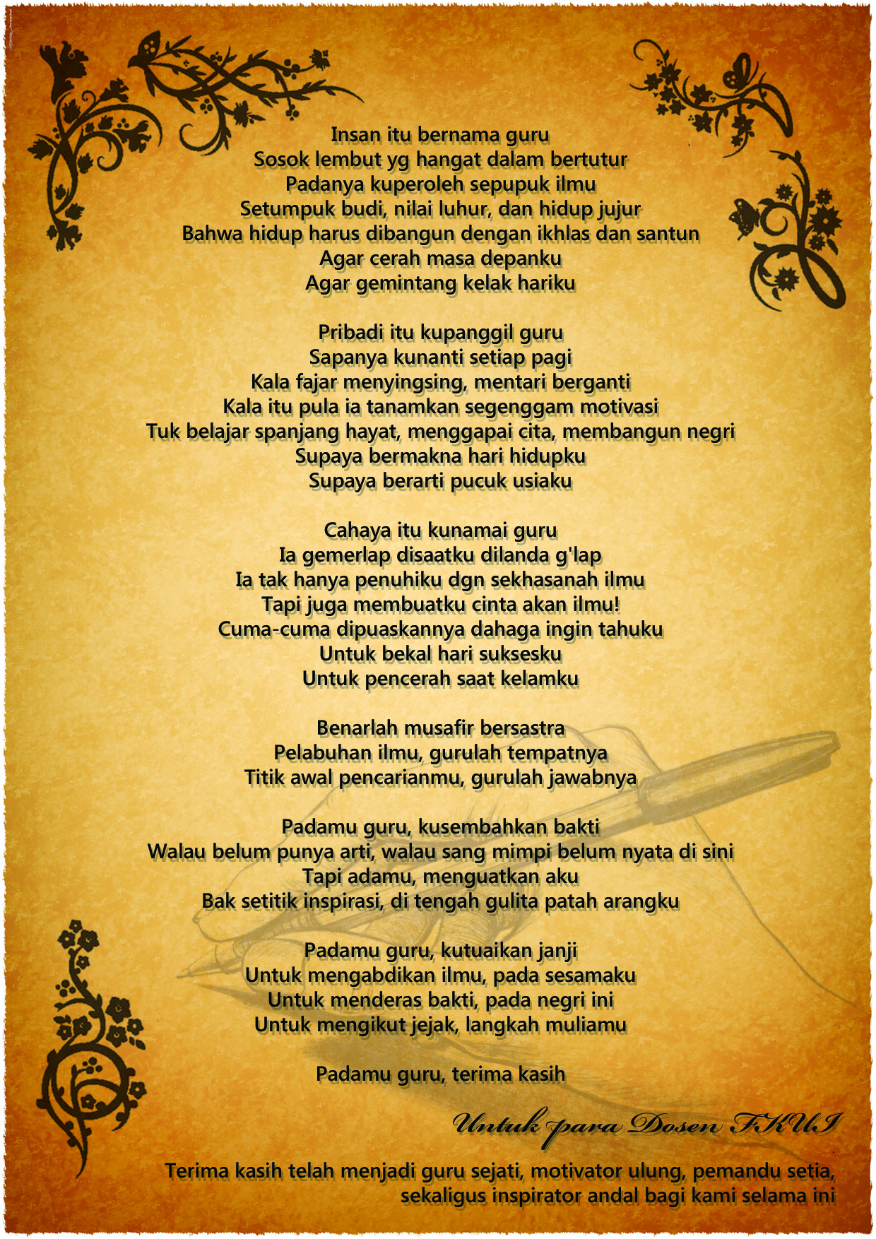 kerana guru pembekal ilmu.